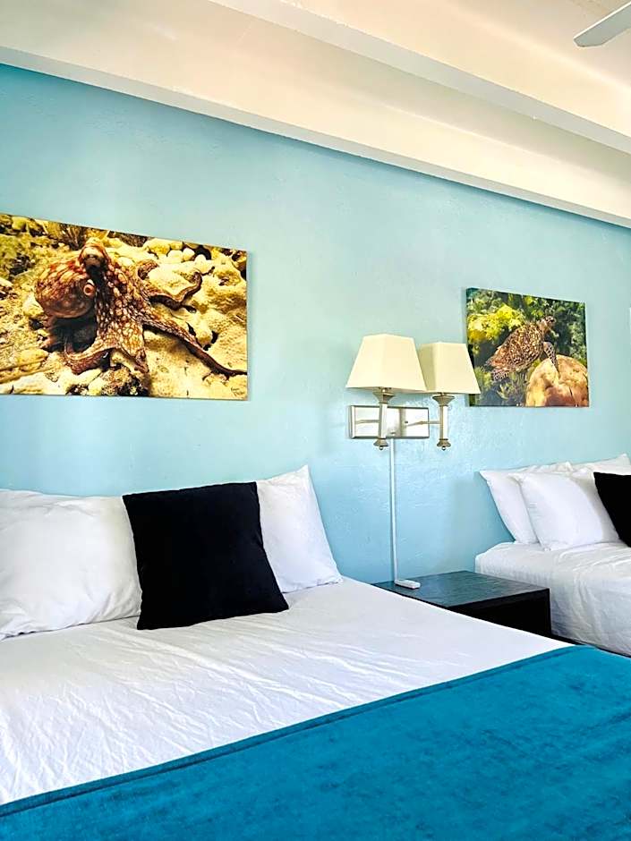 This room features a 42-inch flat-screen cable TV, small refrigerator, and microwave. A seating area is also included.